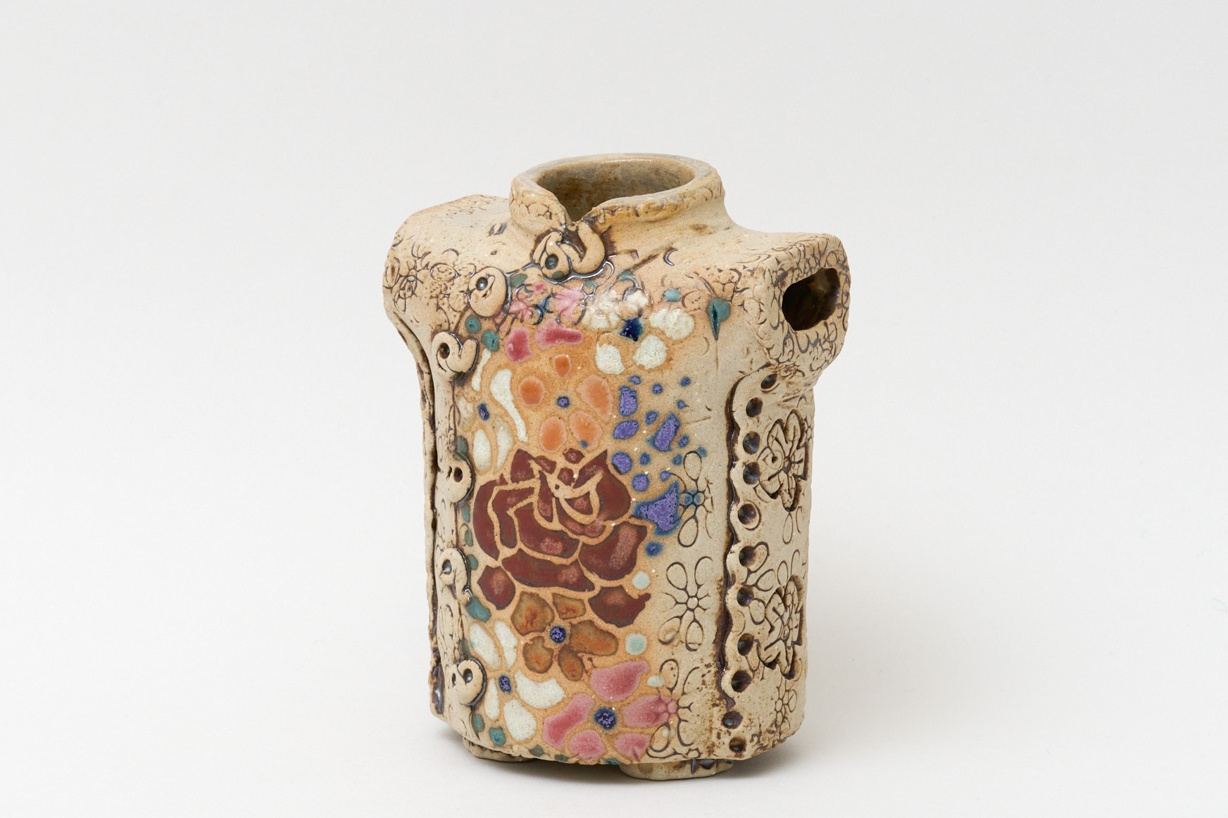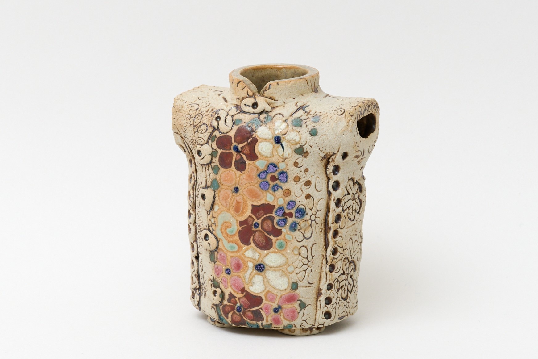 どこか懐かしい色合いと優しいたたずまい。ジュアン先生のぬくもり溢れる花入れ、是非手に取ってみてください。
